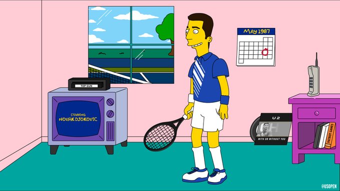 УС Опен направи интересна честитка за Ѓоковиќ. Имено, тие ја анимираа фотографијата на Новак и го направија цртан лик од серијата Симпсонови. Инаку, Ѓоковиќ е роден во истата година кога започна да се емитува еден од најпопуларните серии во 1987 година.