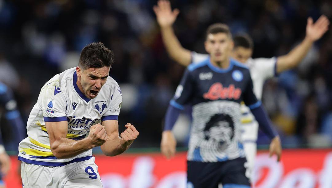 Елиф Елмас играше од 62. минута, но не успеа да помогне Наполи да ја задржи максималната серија на домашен терен. Во финишот на мечот Верона играше со 9 играчи по исклучувањата на Беса во 88. минута и на Калиниќ во последните моменти.