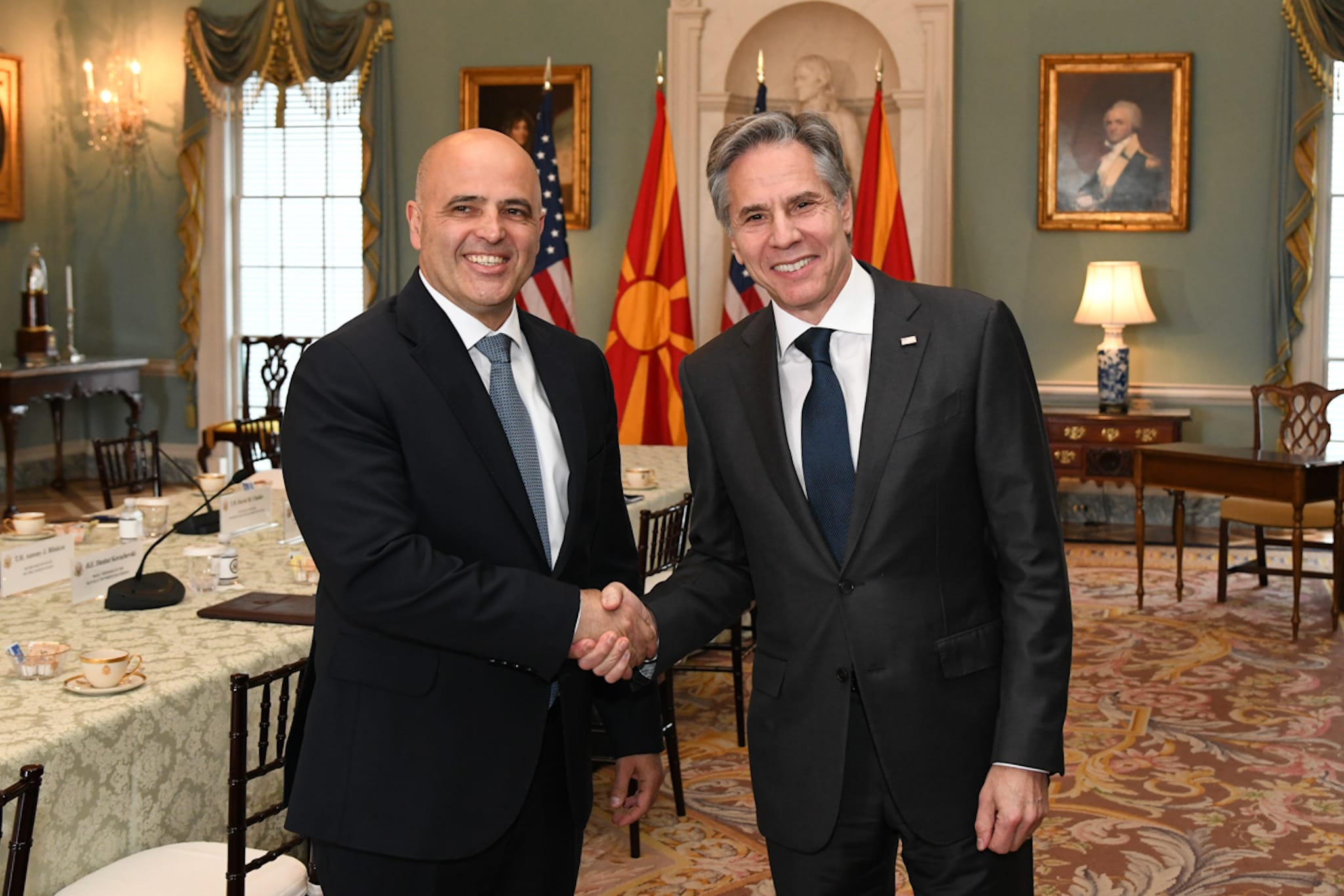 Американскиот државен Секретар Блинкен, на состанокот потенцираше дека САД високо го ценат придонесот на Република Северна Македонија во регионалниот контекст но пред се како цврст НАТО сојузник. Блинкен истакна дека САД ќе продолжат да ја поддржуваат Северна Македонија во нејзините следни чекори високо ценејќи ги досегашните храбри и мудри одлуки кои Владата ги презеде во насока на обезбедување просперитетна иднина во рамки на ЕУ и НАТО.