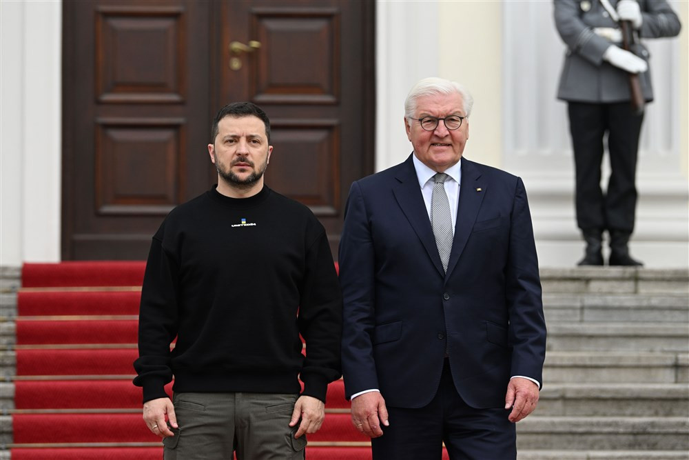 Германскиот претседател Франк-Валтер Штајнмаер денеска го пречека Володимир Зеленски во Шлос Белви, неговата официјална резиденција во Берлин, со што и официјално почна посетата на украинскиот претседател на Германија.