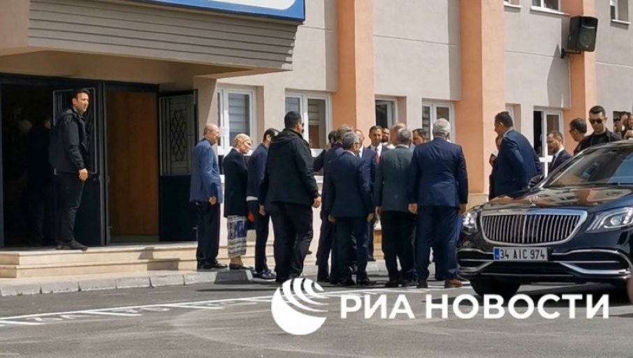 На новинарите не им беше дозволено да влезат во избирачкото место пред и за време на гласањето на Ердоган, но им беше дадена можност да го гледаат турскиот претседател како излегува од автомобилот зад оградата и влегува во вратата од училиштето.