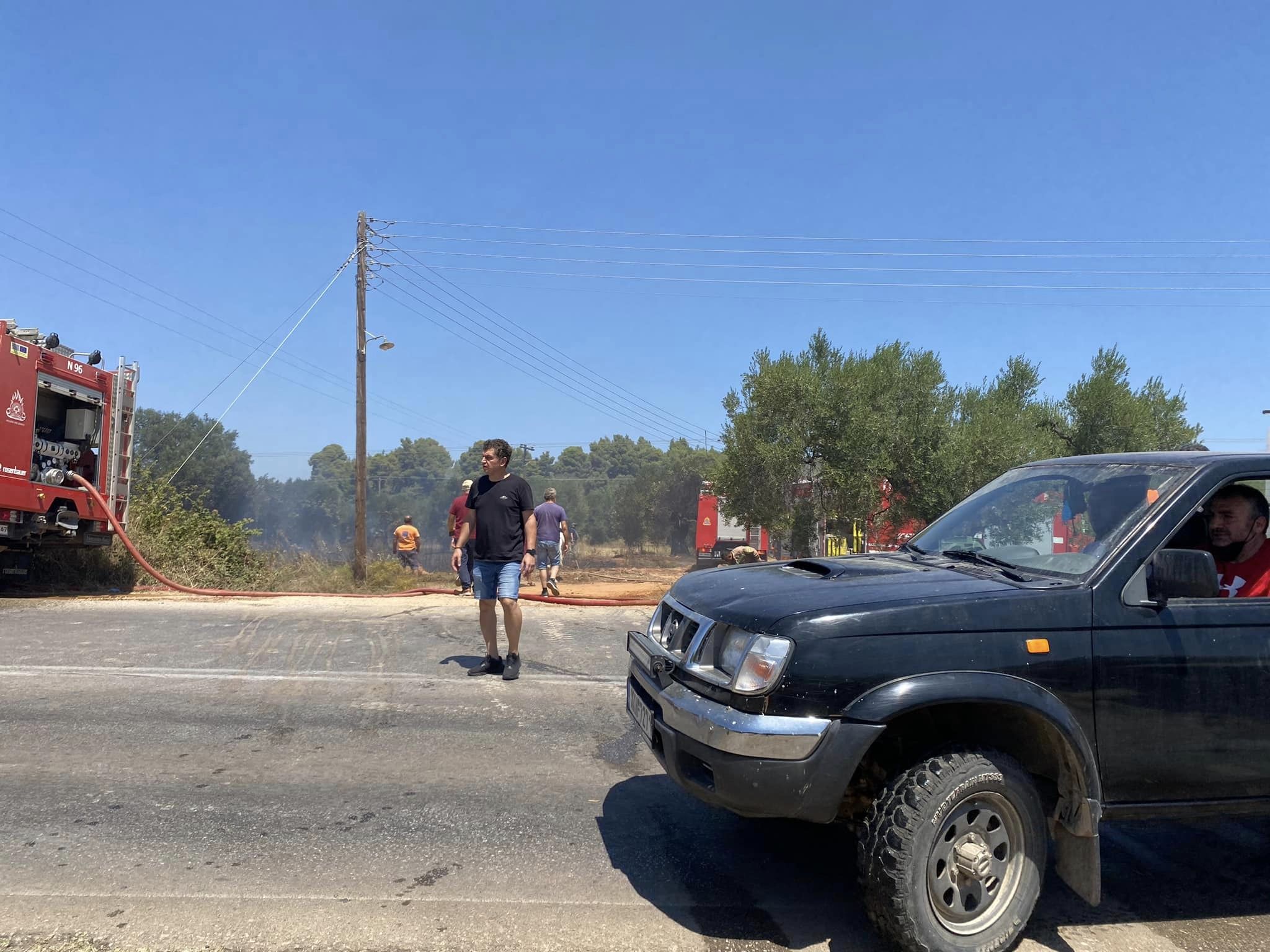 На веб-страницата Халкидики Политики се наведува дека пожарот е јасно видлив од Никити и дека пожарот гори во близина на кампот Милош.