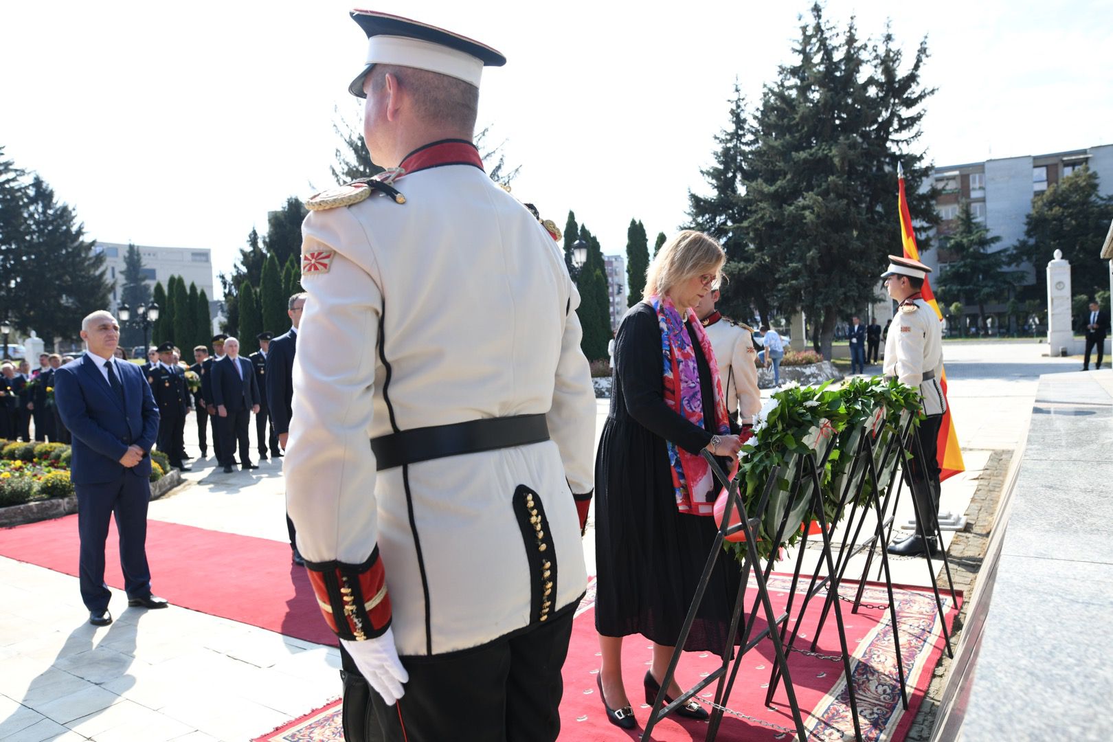 Делегацијата положи цвеќе во Меморијалниот комплекс „Партизански гробишта” во Бутел и пред споменикот „Ослободители на Скопје” на платото пред Владата на Република Северна Македонија.