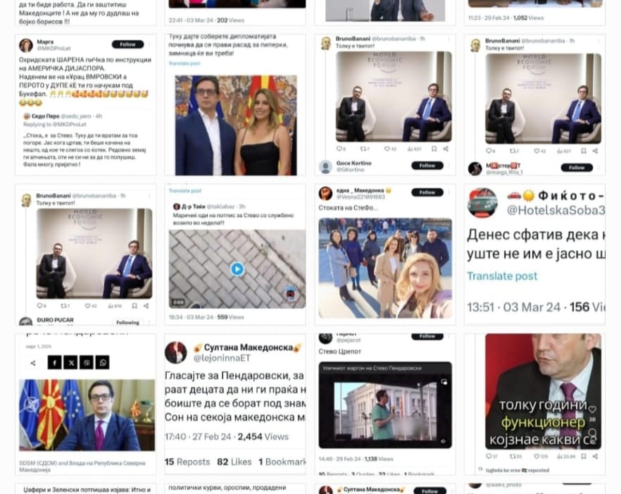 „Нашето истражување лоцираше најмалку 120 профили на социјалната мрежа Х кои огромен дел од објавените содржини ги насочуваат како напад кон претседателот на државата“ се вели во написот.