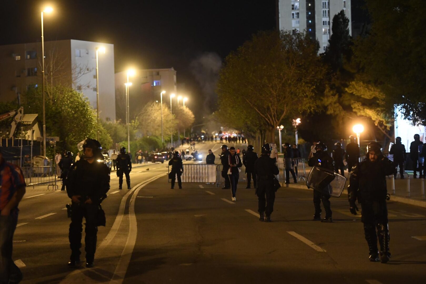 Од трибините на култниот стадион, протестот на навивачите на Хајдук се прошири и на улиците на Сплит, каде се тепаа меѓу себе, фрлаа факели и палеа контејнери. Тие ги нападнале и полицајците со стаклени шишиња, факели и камења. Како оружје се користеле и летви.