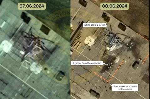 Главната воена разузнавачка служба на Украина сподели сателитски фотографии за кои рече дека ги покажуваат последиците од нападот. Доколку се потврди, тоа би претставувало прво уништување (иако на земја, не во акција) на борбен авион СУ-57, двомоторен „стелт“ ловец кој се смета за најнапредниот воен авион на Москва.