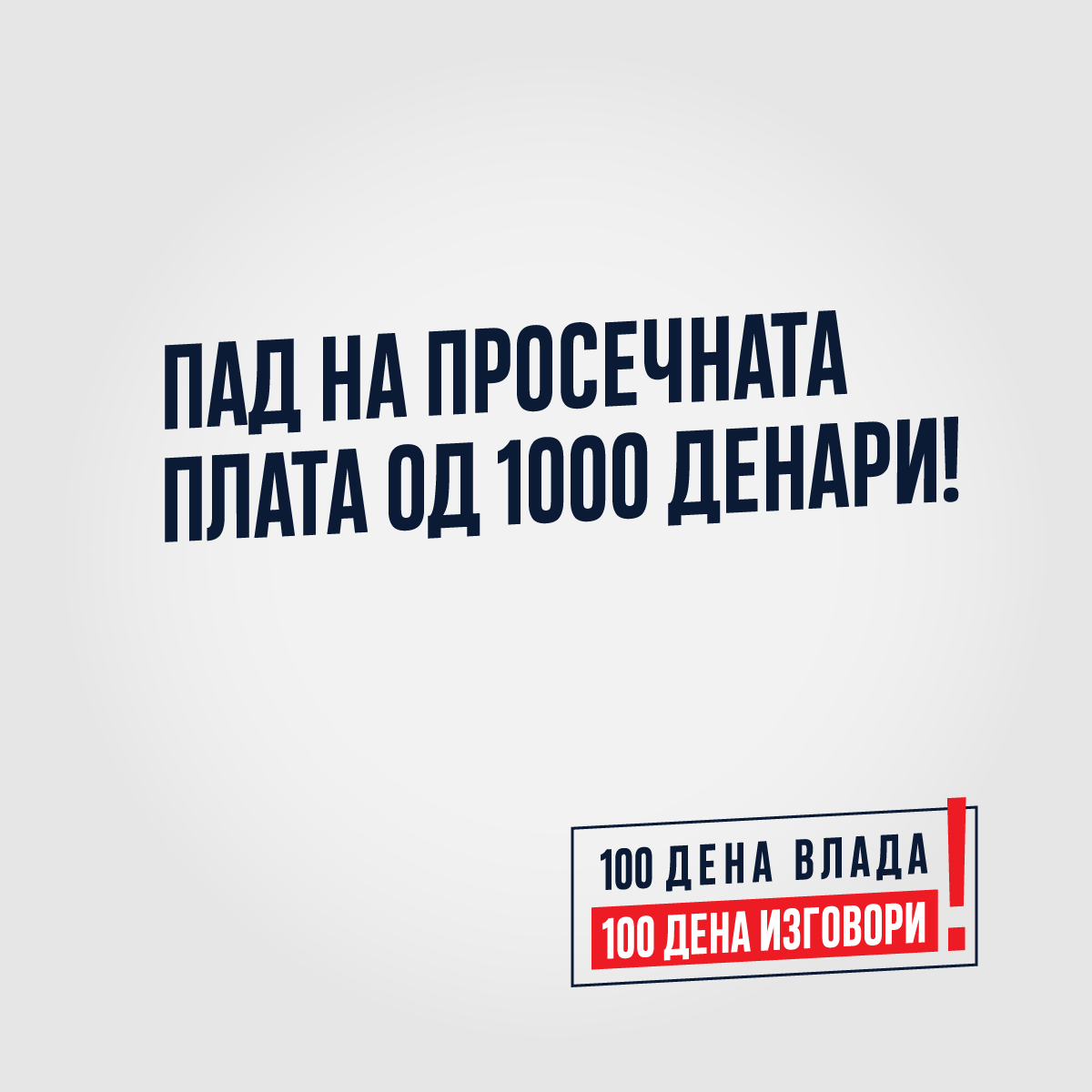 За прв пат по седум години во изминатите 100 дена граѓаните се соочија со непријатна реалност – платите почнаа да паѓаат, просечната плата се намали за цели 1.000 денари.