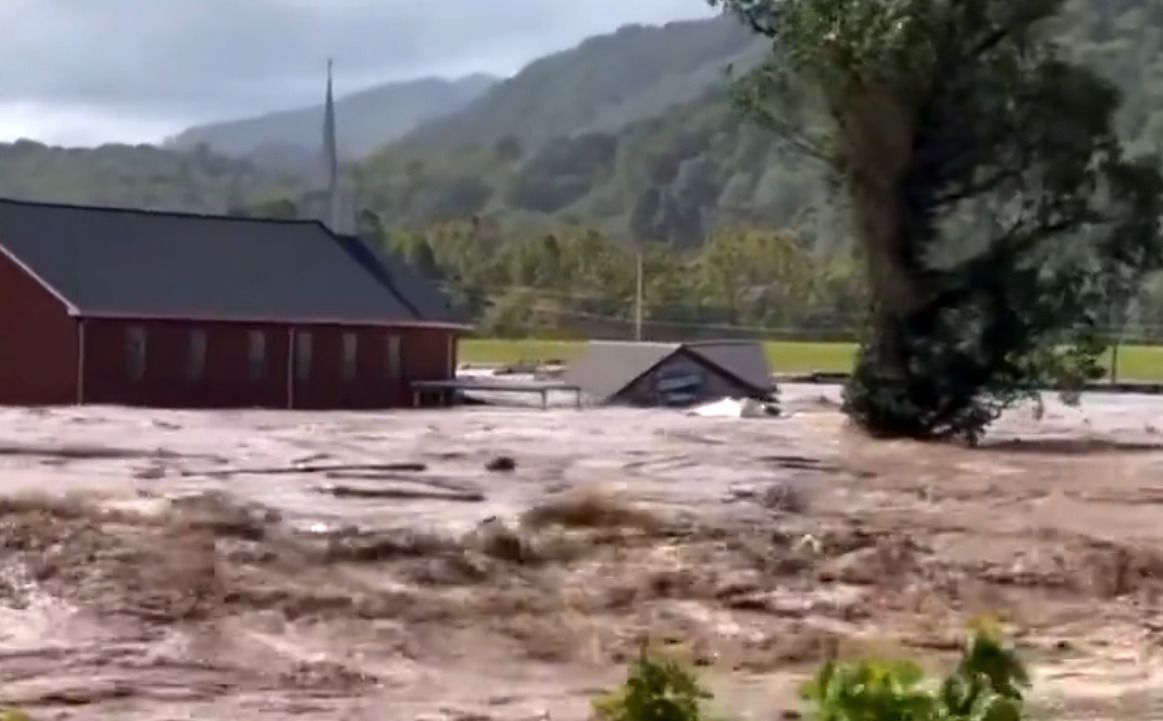Обилните врнежи предизвикаа поплави во Ешвил. Патиштата беа затворени, има одрони, што уште повеќе ја отежна работата на спасувачките екипи.